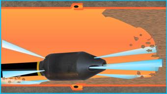 Die Kanalreinigung führen wir mit Hilfe unseres kombinierten Hochdruck- Spül- und Saugfahrzeuges mit Wasserrückgewinnung durch. Die Hochdruckspülung löst Sedimente an der Rohrwandung oder Rohrsohle durch Druckwasserstrahlen und transportiert sie bis zum nächsten Schacht. Dort werden sie kontinuierlich abgesaugt und anschließend entsorgt. Betonablagerungen und verfestigte Ablagerungen werden durch Spezialdüsen effektiv aus dem Rohr entfernt.